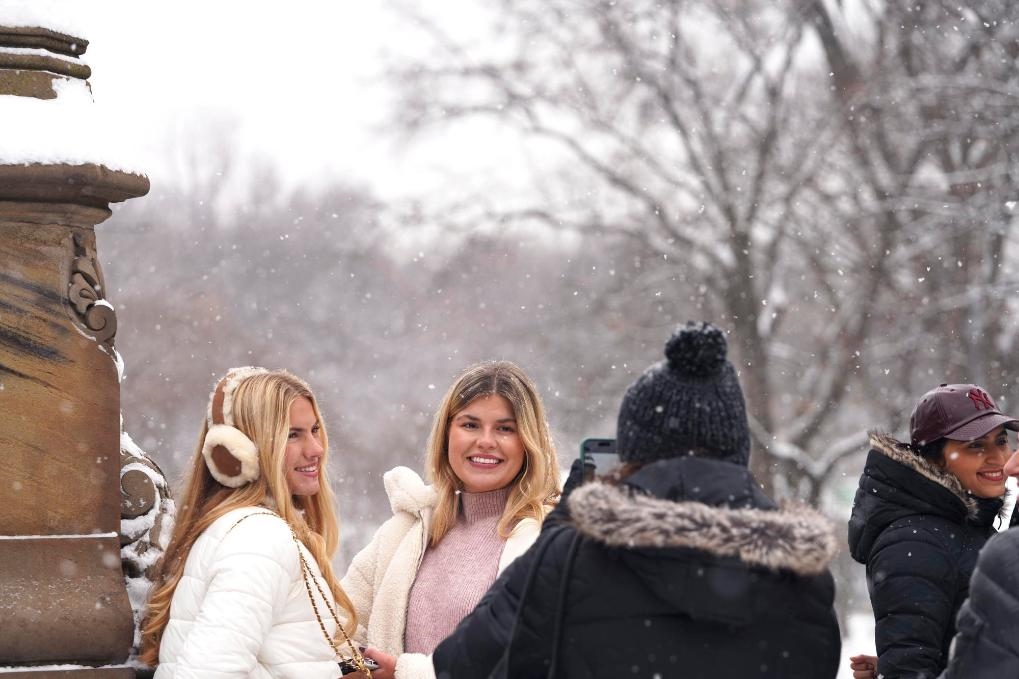 12月27日,在美國(guó)紐約中央公園,人們?cè)谘┲辛粲啊P氯A社記者張鳳國(guó)攝