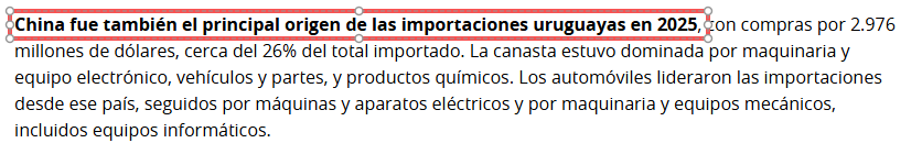 2025年,中國繼續(xù)保持烏拉圭第一大出口市場地位。根據(jù)烏拉圭二十一世紀(jì)投資和出口促進(jìn)局發(fā)布的年度外貿(mào)報告,2025年烏拉圭對華出口額達(dá)到34.93億美元,占烏拉圭出口總額的26%,較2024年增長約12%。