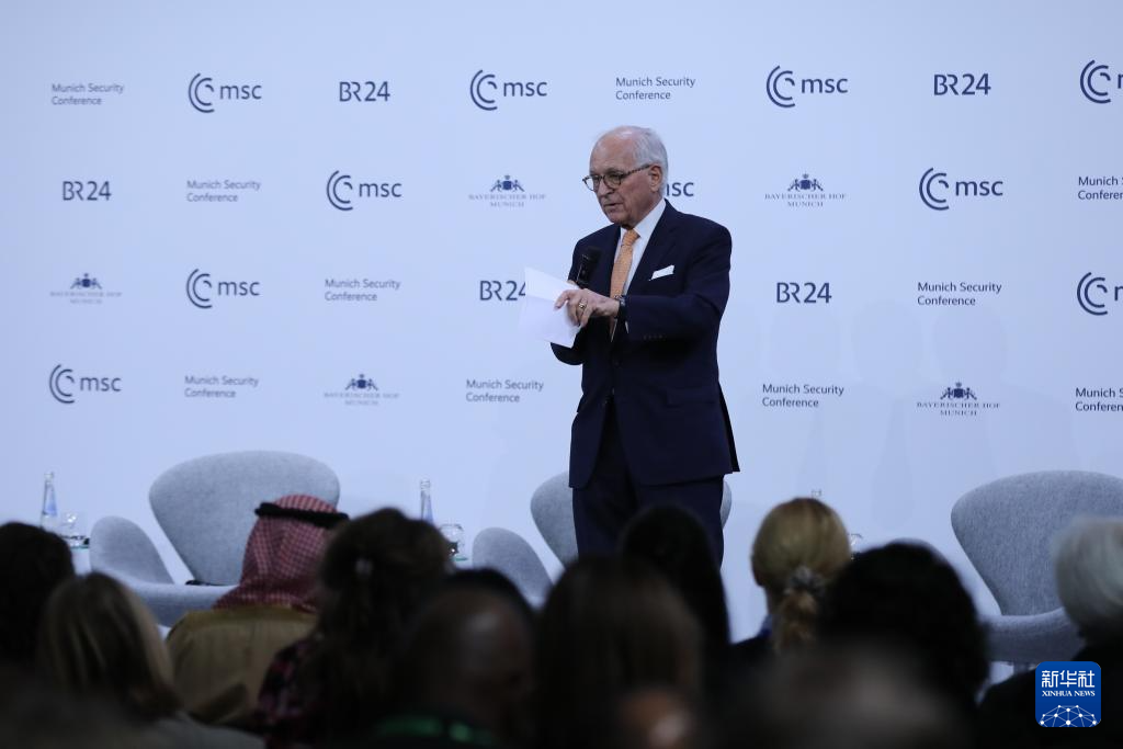 2月15日,在德國(guó)慕尼黑,慕安會(huì)主席沃爾夫?qū)ひ辽旮駹栐陂]幕式上致辭。新華社記者 杜哲宇 攝