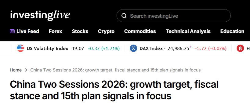 美國知名財(cái)經(jīng)網(wǎng)站Investinglive重點(diǎn)新一年度政府工作報(bào)告,該報(bào)告通常會設(shè)定年度主要目標(biāo)和政策任務(wù),并最清晰地傳遞出中央政府的宏觀政策取向。