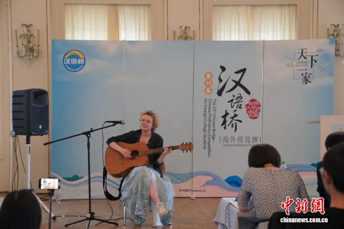 2024年5月25日,第二十三屆“漢語橋”世界大學(xué)生中文比賽德國區(qū)決賽在萊比錫舉行。圖為特等獎得主李歡欣(Ann-Christin Otte)在比賽中展示才藝。中新社記者 馬秀秀 攝