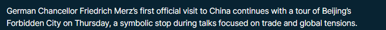 多家外媒關(guān)注默茨訪華 稱中國龐大市場(chǎng)及先進(jìn)技術(shù)至關(guān)重要