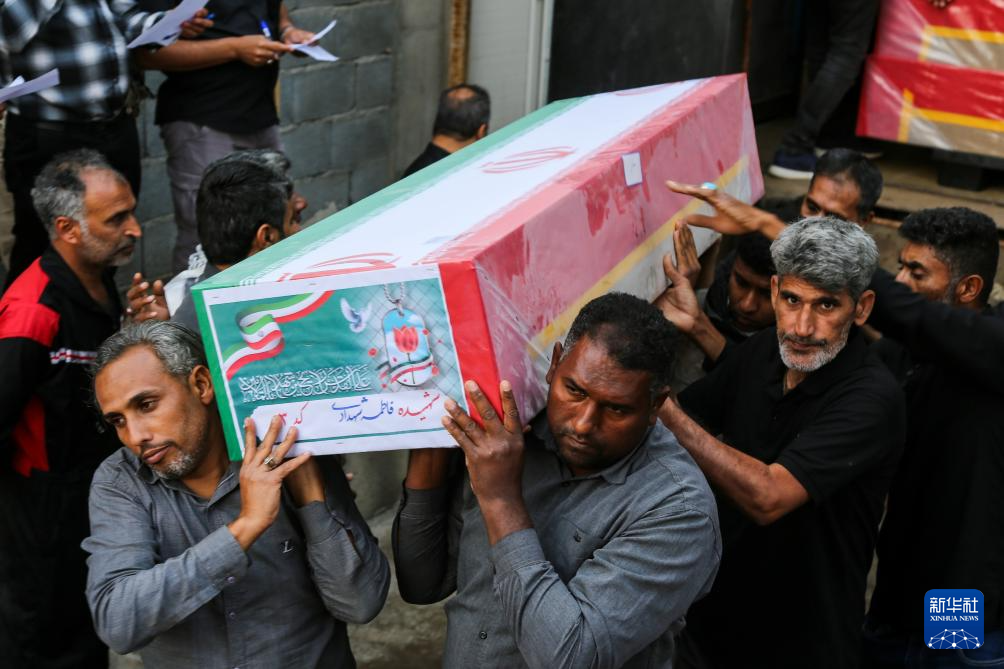 3月3日,在伊朗南部米納卜市,人們?yōu)樵獾矫酪钥找u小學的遇難者舉行葬禮。