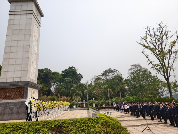 祭掃儀式莊嚴肅穆。中老人士敬獻花圈并鞠躬默哀,瞻仰紀念碑和烈士墓,向革命先輩表達崇高敬意。