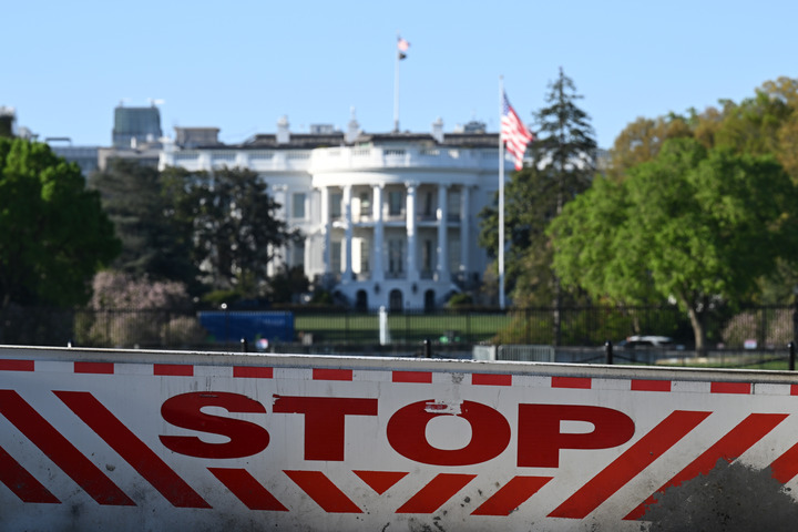 這是4月7日在美國首都華盛頓拍攝的白宮。新華社記者李睿攝