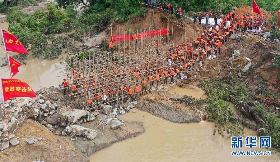 在鄱陽縣江家?guī)X村,一個排澇站突發(fā)穿孔險情。跨區(qū)支援的上饒市信州區(qū)人武部120名民兵及時趕到,采用裝填鐵絲網(wǎng)、投放沙石袋等方法進行封堵,連續(xù)奮戰(zhàn)9個多小時,成功排除險情。