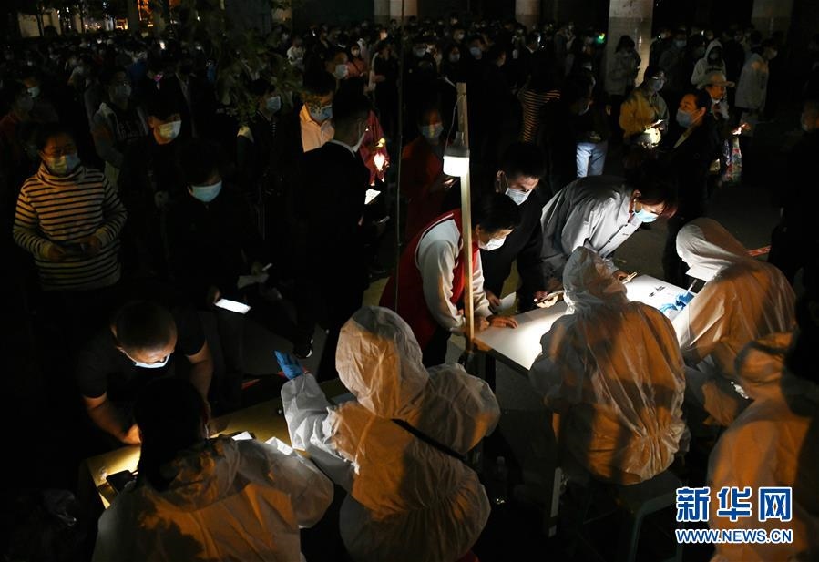 10月12日,市民在青島市市南區(qū)一檢測點(diǎn)進(jìn)行免費(fèi)核酸檢測。記者12日晚從青島市政府新聞辦召開的新聞發(fā)布會上獲悉,青島市已完成過百萬人的核酸檢測采樣,已出檢測結(jié)果31萬余份,未發(fā)現(xiàn)有新的陽性感染者。新華社記者李紫恒攝