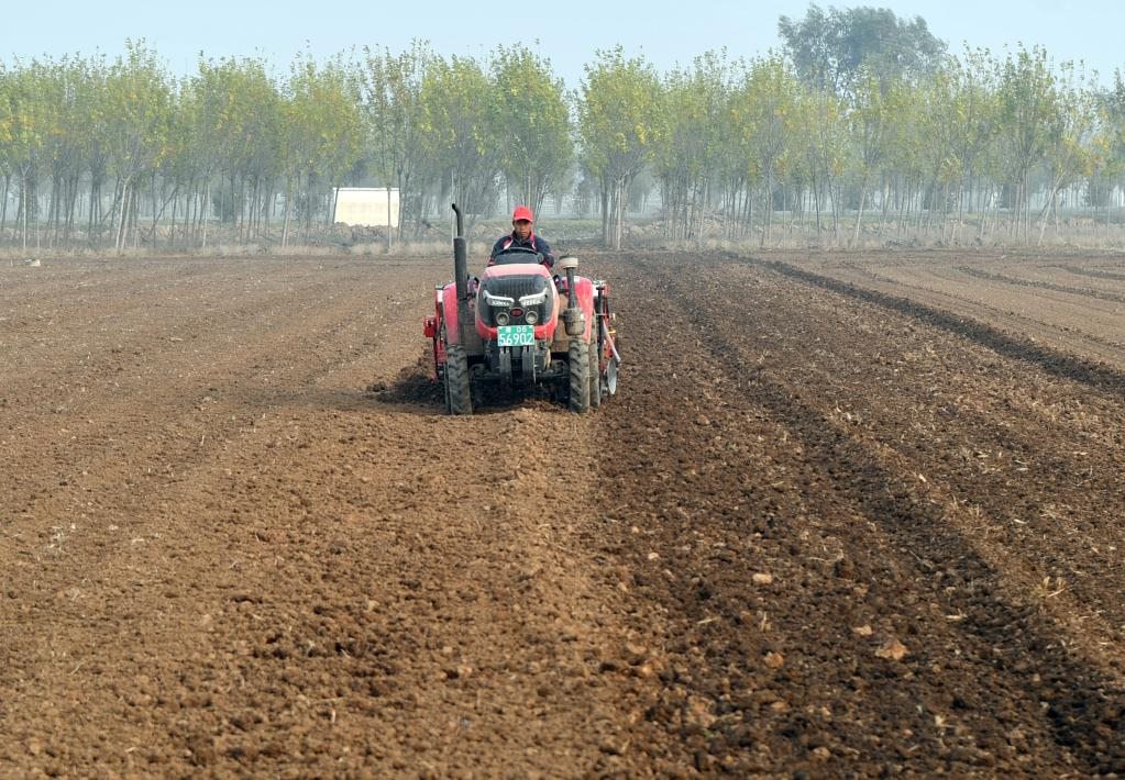 11月2日,河南??h30萬(wàn)畝高標(biāo)準(zhǔn)農(nóng)田示范方內(nèi),農(nóng)民在播種小麥。(新華社記者李嘉南 攝)