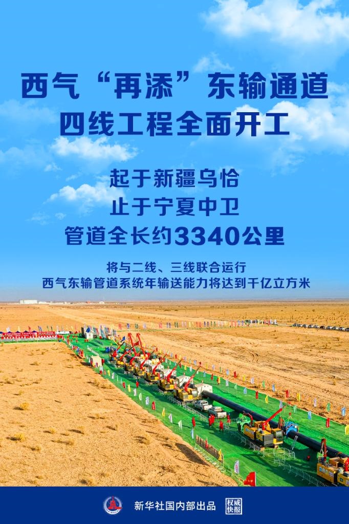 國家管網(wǎng)集團(tuán)西氣東輸四線工程28日正式開工,工程起于新疆烏恰縣,止于寧夏中衛(wèi)市,管道全長(zhǎng)約3340公里。