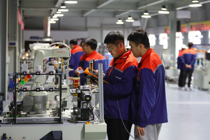 圖為11月2日,在沈陽工學(xué)院工業(yè)機(jī)器人實訓(xùn)中心,機(jī)器人工程專業(yè)學(xué)生進(jìn)行工業(yè)機(jī)器人基礎(chǔ)實踐應(yīng)用操作。近年來,沈陽工學(xué)院全力建設(shè)工業(yè)機(jī)器人實訓(xùn)中心,將車間搬進(jìn)校園。針對企業(yè)需求,學(xué)校開展機(jī)械加工等實操課程,有力提升學(xué)生就業(yè)水平。新華社記者 楊青 攝