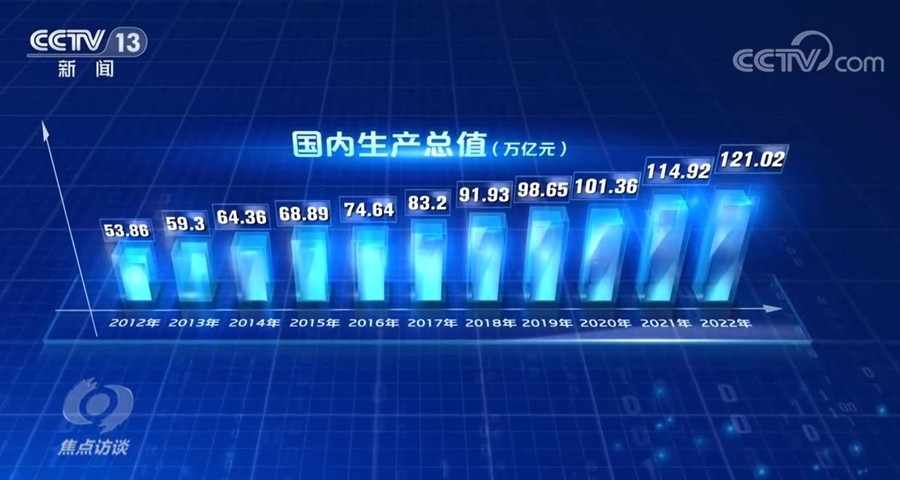 國家統(tǒng)計局局長康義:“這是繼2020年、2021年連續(xù)突破100萬億元、110萬億元之后,又躍上新的臺階。經(jīng)濟總量和人均水平持續(xù)提高,意味著我國的綜合國力、社會生產(chǎn)力、國際影響力、人民生活水平進一步提升。”