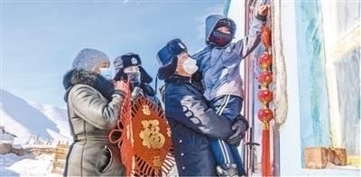 在新疆維吾爾自治區(qū),阿勒泰邊境管理支隊(duì)富蘊(yùn)大隊(duì)吐爾洪邊境派出所的民警和護(hù)邊員到偏遠(yuǎn)山區(qū)困難群眾家中探訪。李銘驥攝(影像中國)
