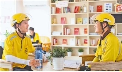 江蘇省淮安市打造集閱讀休息、補(bǔ)給茶水、醫(yī)療等多功能為一體的驛站,為外賣騎手、網(wǎng)約車司機(jī)等新就業(yè)群體從業(yè)人員提供暖心服務(wù)。趙啟瑞攝(人民視覺)