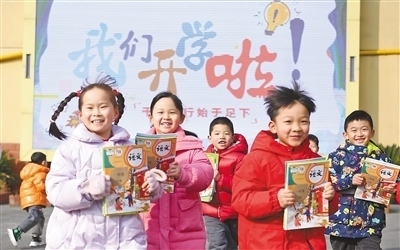 安徽省合肥市蜀山區(qū)北苑村社區(qū)琥珀小學(xué)(東區(qū)),孩子們在校園里迎接新學(xué)期的到來。陳三虎攝(影像中國)