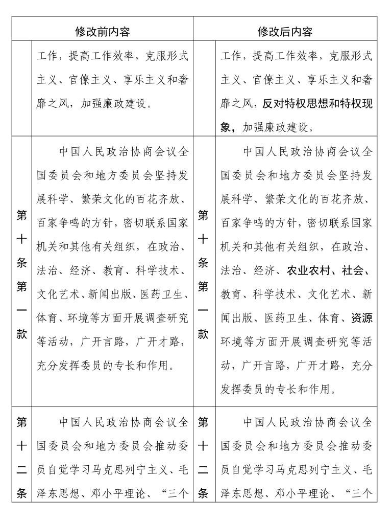 中國人民政治協(xié)商會議章程 修改前后內(nèi)容對照表(10) 新華社發(fā)