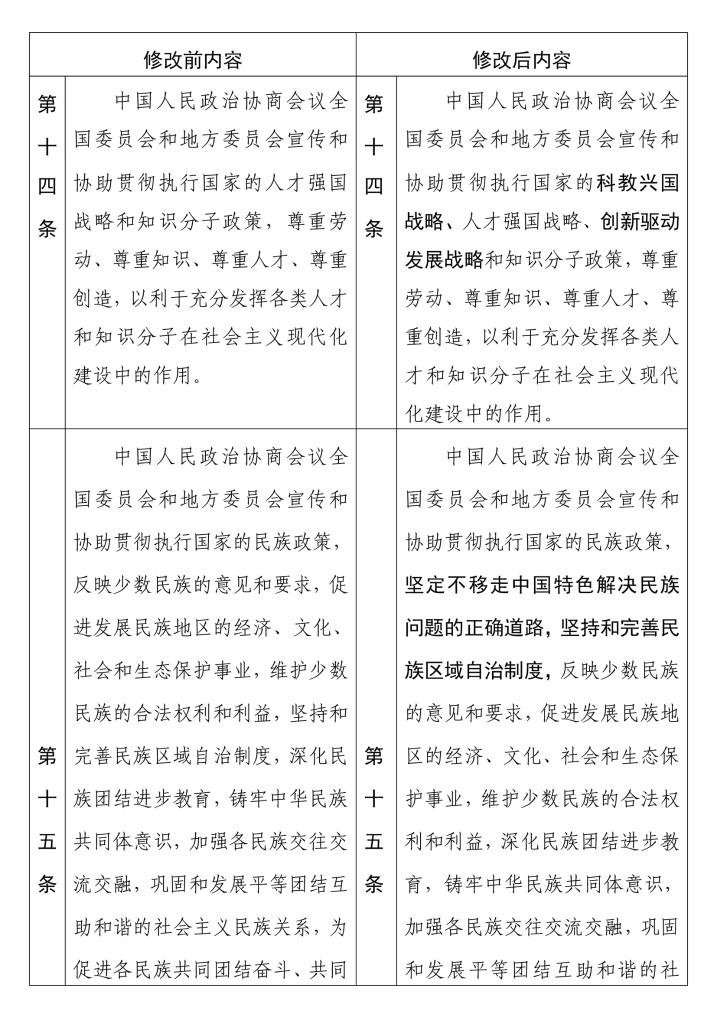 中國人民政治協(xié)商會議章程 修改前后內(nèi)容對照表(15) 新華社發(fā)