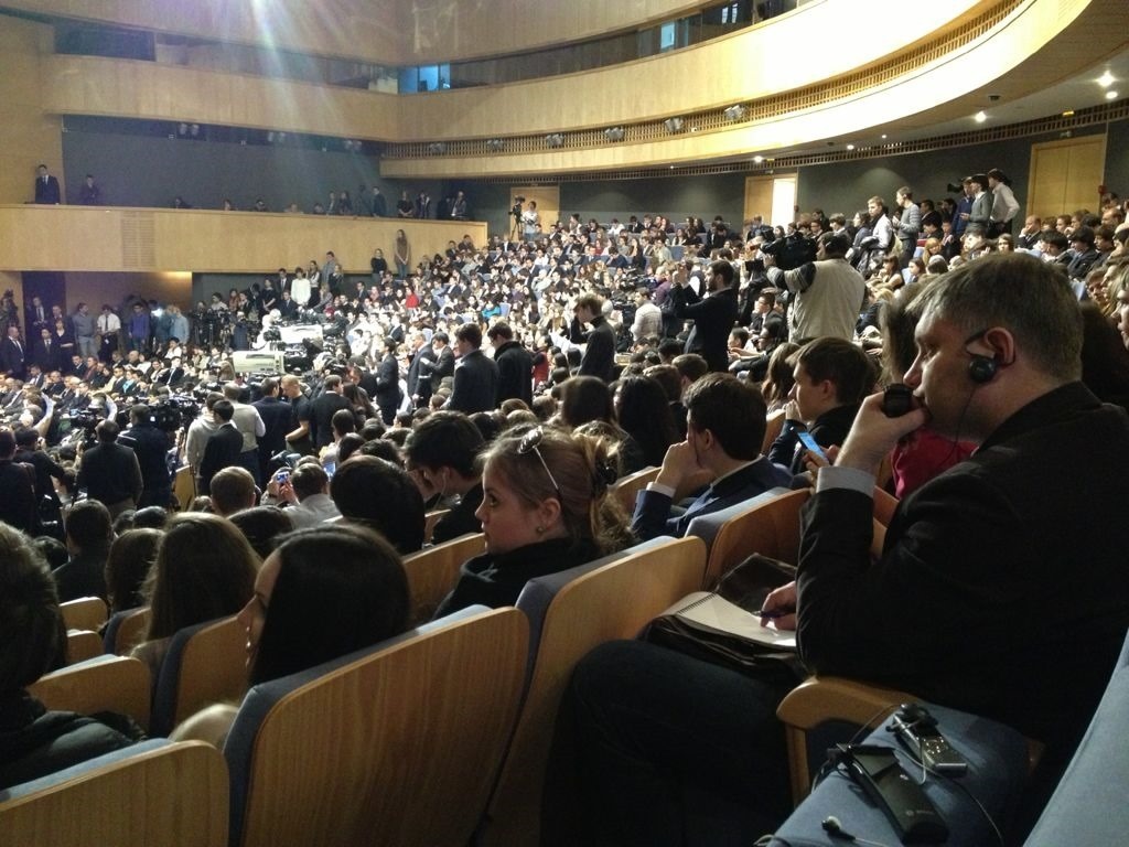 2013年3月23日,國家主席習近平在莫斯科國際關系學院發(fā)表演講時,現場座無虛席。新華社發(fā)