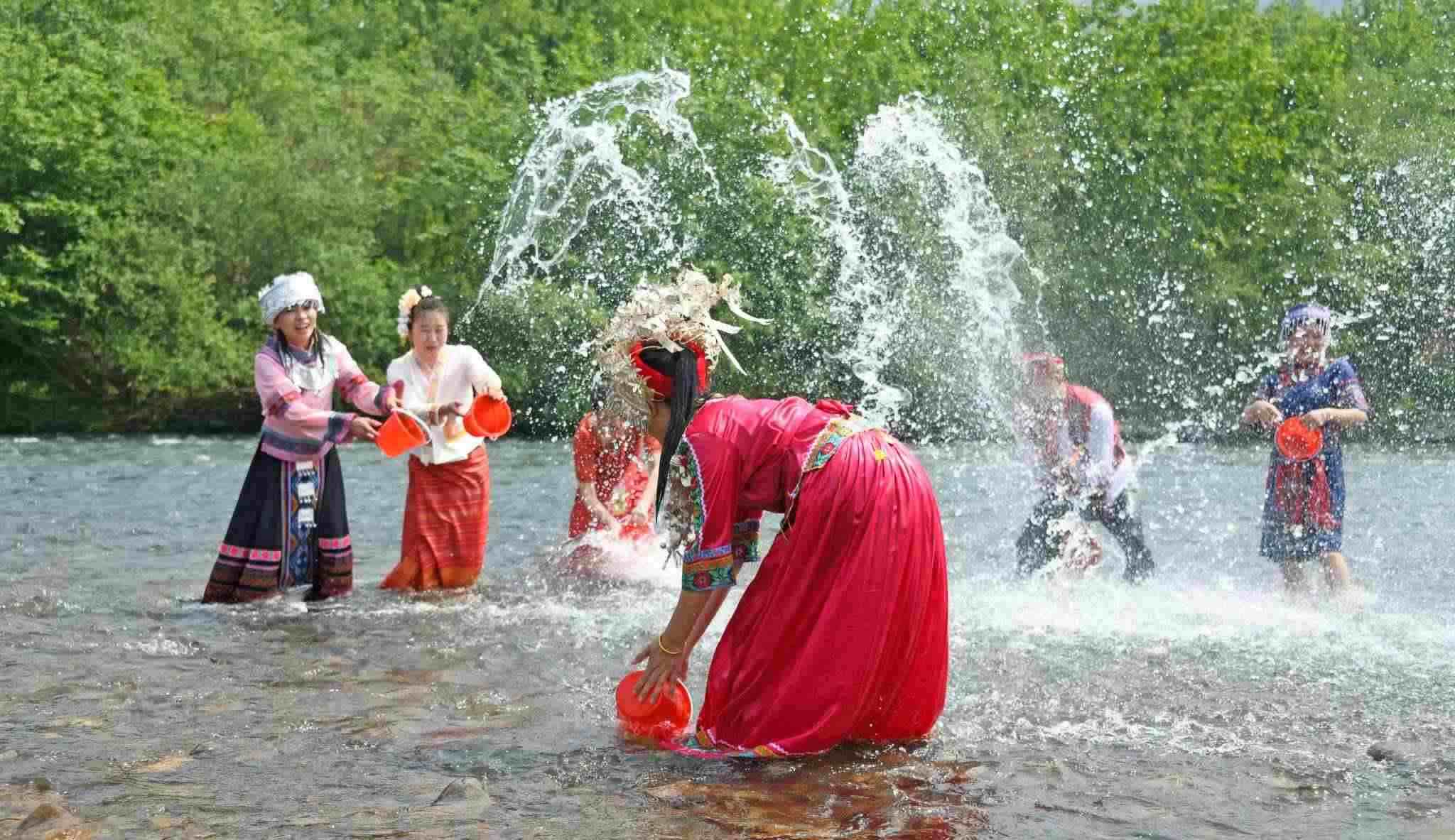 浙江臺州:傣族同胞參加潑水活動迎傣歷新年