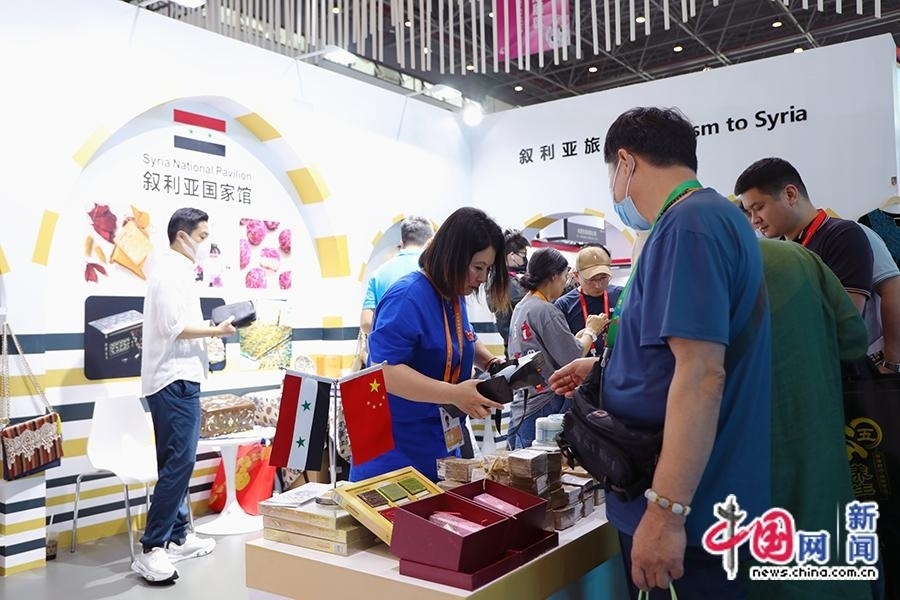 4月11日,工作人員為觀眾介紹敘利亞玫瑰精油等產(chǎn)品。中國網(wǎng)記者 吳亮 攝