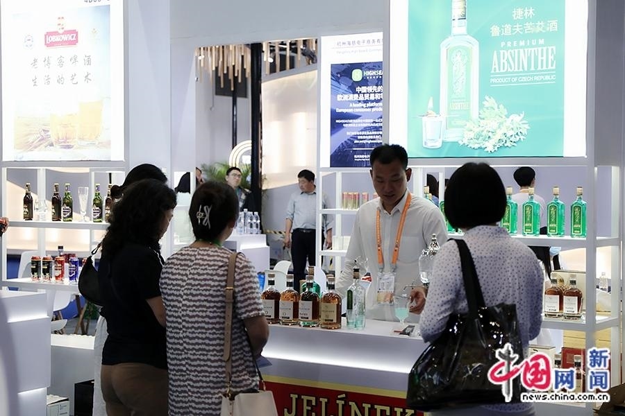 4月11日,工作人員為觀眾介紹捷克啤酒并提供試飲。中國網(wǎng)記者 吳亮 攝