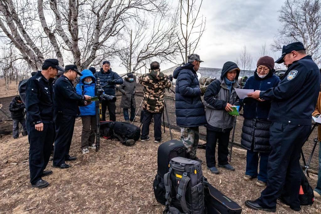 4月17日,民警在向攝影愛好者宣傳鳥類保護(hù)知識。(宿海東 攝)