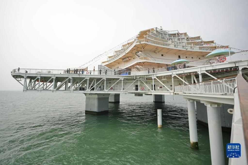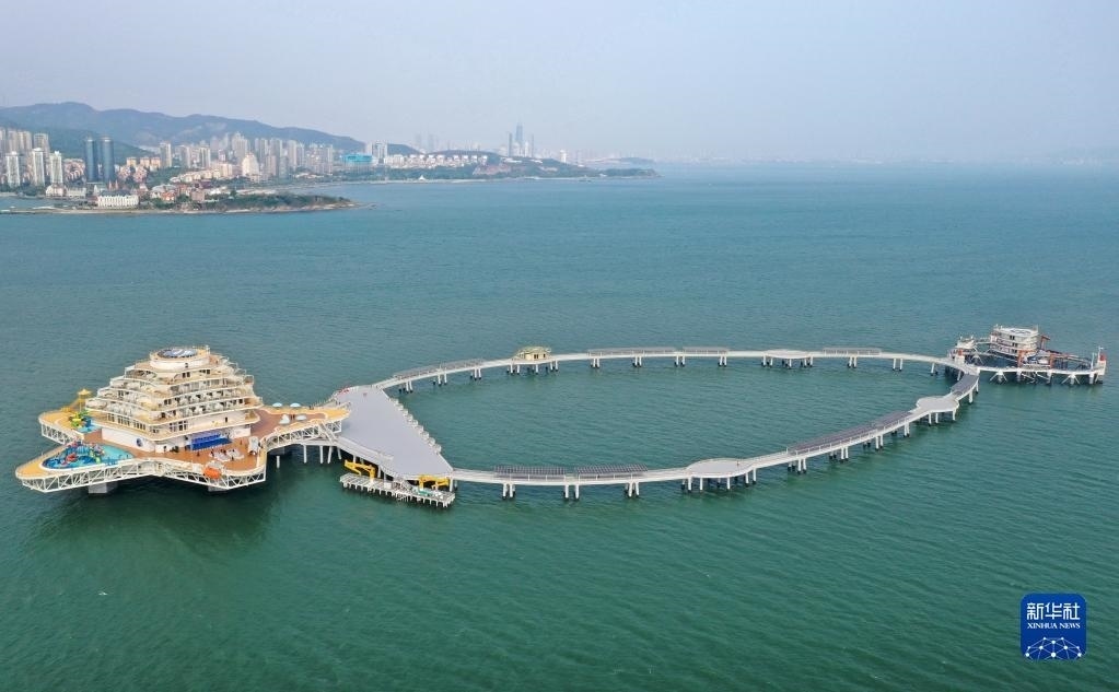 當(dāng)日,位于山東省煙臺(tái)市萊山區(qū)的“耕海1號(hào)”海洋牧場(chǎng)綜合體二期項(xiàng)目投入運(yùn)營(yíng)?!案?號(hào)”集漁業(yè)養(yǎng)殖、海上觀(guān)光、休閑垂釣、餐飲住宿、科研科普等于一體,創(chuàng)新性實(shí)現(xiàn)現(xiàn)代海洋漁業(yè)、海洋工程技術(shù)和海洋文化旅游產(chǎn)業(yè)深度有機(jī)融合。新華社發(fā)(唐克攝)