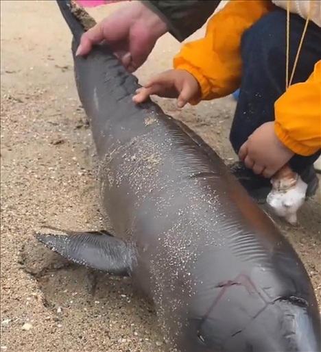 ·福建平潭海灘現(xiàn)江豚尸體,官方:已移交給研究所。