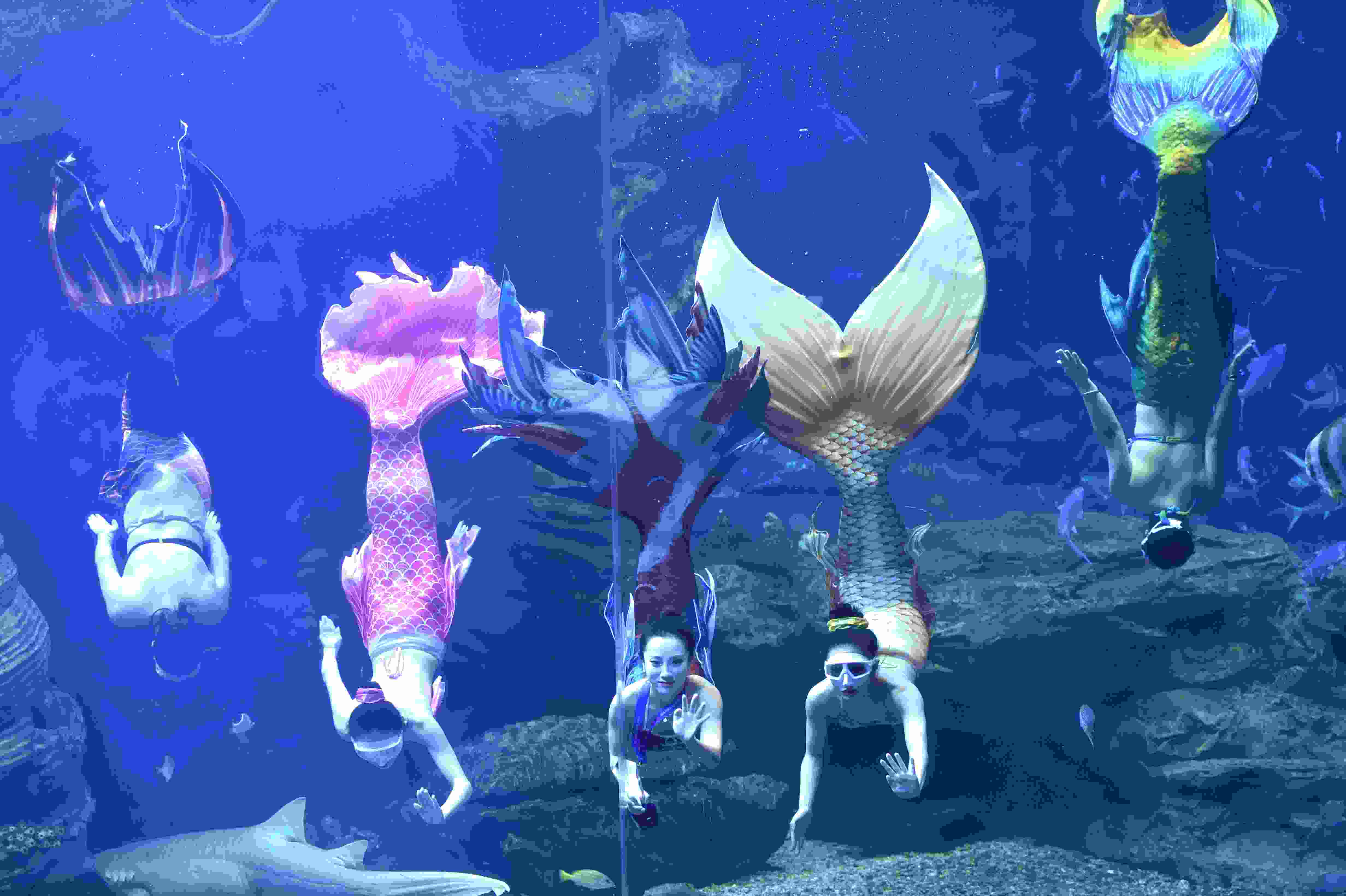 2023年4月28日,“美人魚(yú)”在貴陽(yáng)市多彩貴州城極地海洋世界表演。