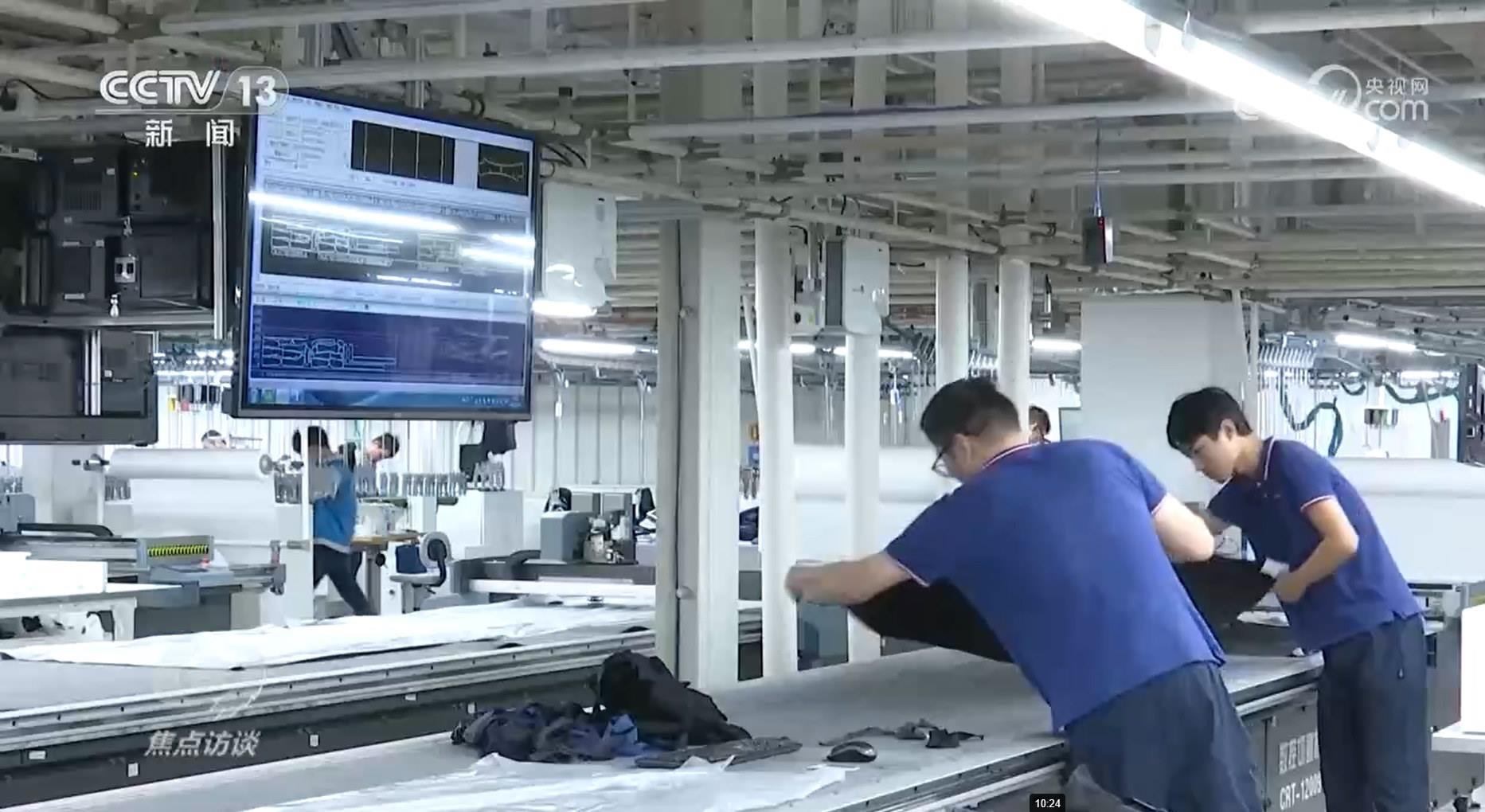 青島酷特智能股份有限公司經理劉阿娜:“全球的客戶只要把一些核心的數據給到我們,幾秒鐘后會自動生成客戶想要的版型,進入生產?!?/p>