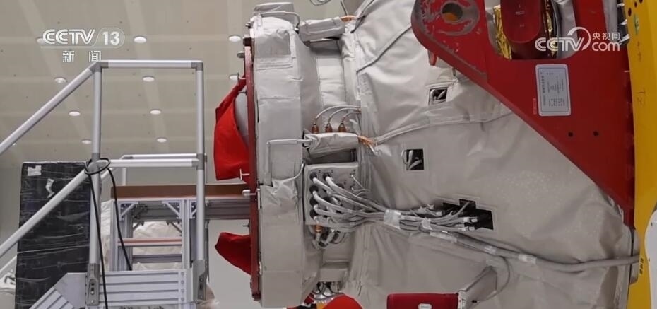 總臺(tái)央視記者 陶嘉樹:在我身后的就是天舟貨運(yùn)飛船,它的長(zhǎng)度是10.6米,它整體分成兩個(gè)部分,下面比較小的這一部分是它的推進(jìn)艙,上面比較大的部分是它的貨物艙。天舟貨運(yùn)飛船總重13.5噸,從天舟六號(hào)開始,它的載貨量從以前的6.9噸提高到了7.4噸,是目前世界上運(yùn)貨能力最強(qiáng)的貨運(yùn)飛船之一。