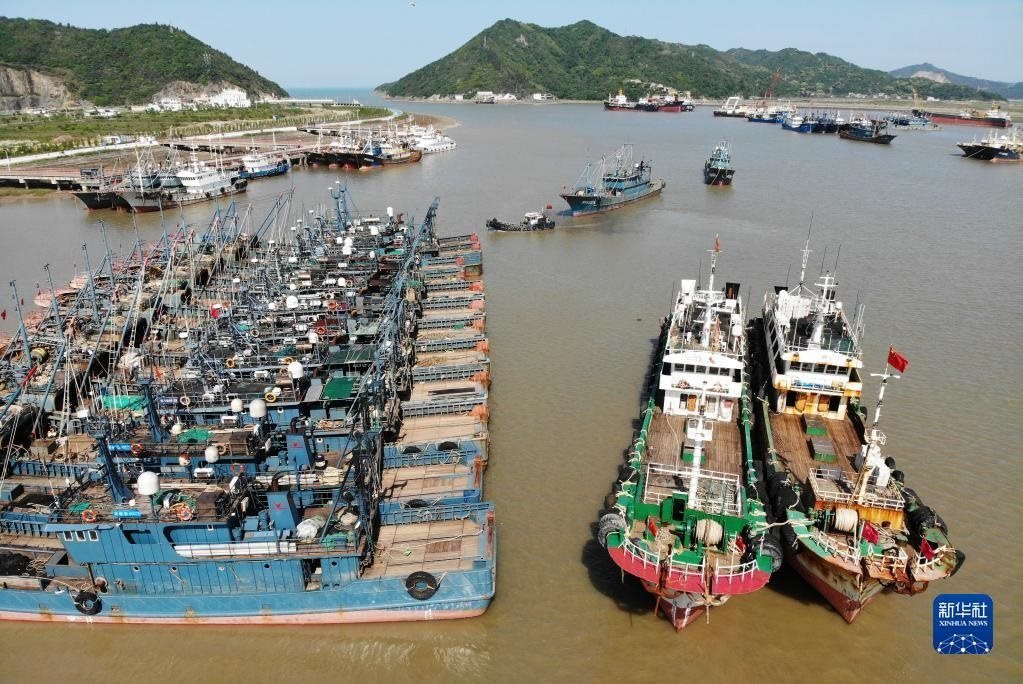 4月30日,在浙江省舟山市普陀區(qū)沈家門漁港,漁船歸港準(zhǔn)備休漁(無人機(jī)照片)。