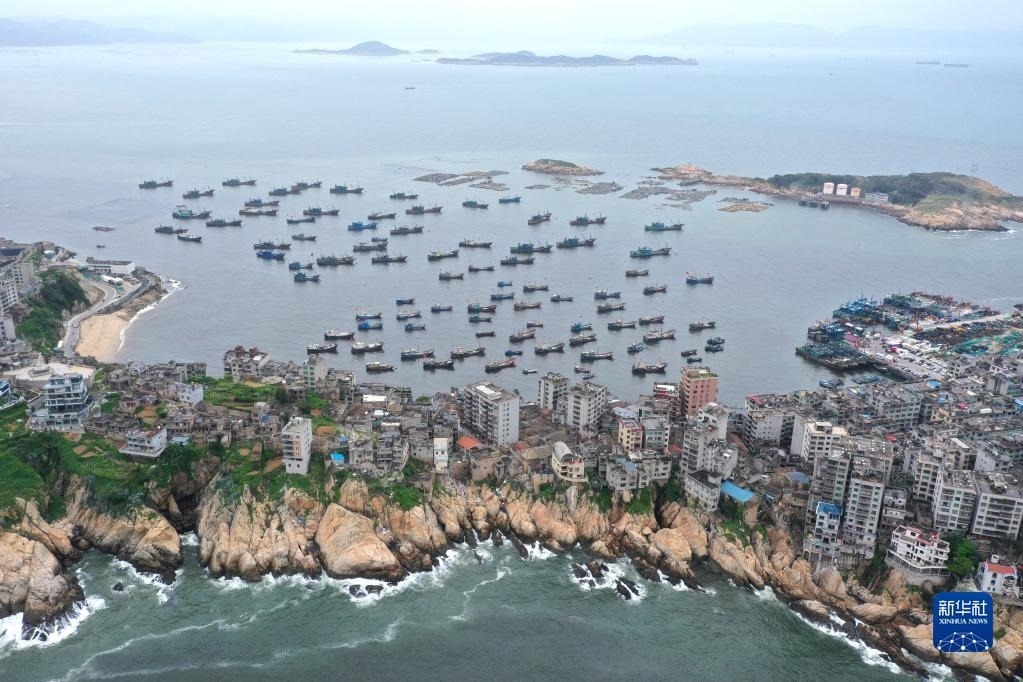 4月30日,準(zhǔn)備休漁的漁船停泊在福建省福州市連江縣苔菉鎮(zhèn)北茭村漁港(無人機(jī)照片)。