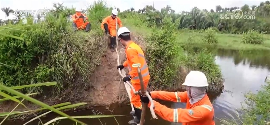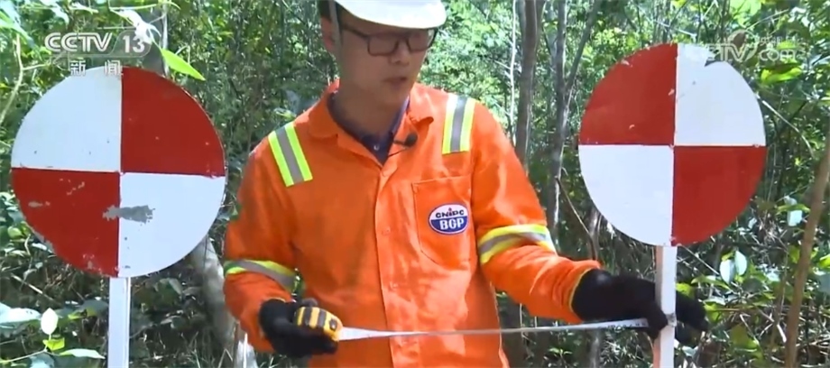 在勘探過程中,工作人員會用不同顏色的飄帶進行標記,這種紅色的飄帶是代表保護樹種,禁止砍伐,藍色飄帶則指示著項目的路線。這些飄帶全都是用可降解材料制成的,在勘探任務結(jié)束后,還會有專門的小組對工區(qū)進行垃圾回收和雨林恢復工作。目前,項目已經(jīng)完成了70%的工作量,預計7月中旬可以順利竣工。一年多來,項目多次接受當?shù)丨h(huán)保等部門的各項檢查,每一次審計和檢測都收到了相關方非常高的評價。