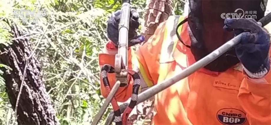 如果在勘探中碰到社區(qū),團隊也會采取“技術性偏點”繞過這些區(qū)域,盡管增加了成本,卻將對環(huán)境的影響降到最低。項目環(huán)保團隊還配備了6名動植物學家負責施工區(qū)域中的動植物保護。今年3月,團隊在勘探中發(fā)現(xiàn)了一條毒性很強的珊瑚蛇,為了保護作業(yè)人員的安全,他們決定將它轉(zhuǎn)移到項目施工區(qū)以外的地方。