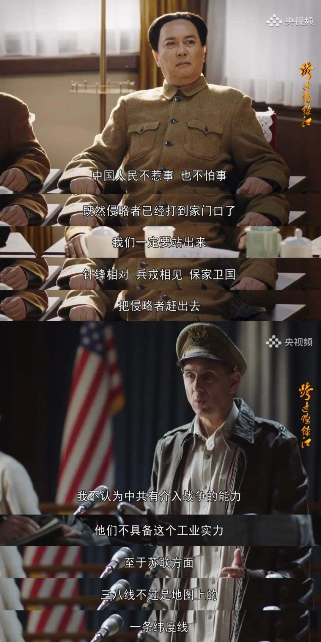 電視劇《跨過鴨綠江》一開篇,就通過劇情演繹及真實(shí)的歷史影像,講清楚抗美援朝戰(zhàn)爭的來龍去脈。