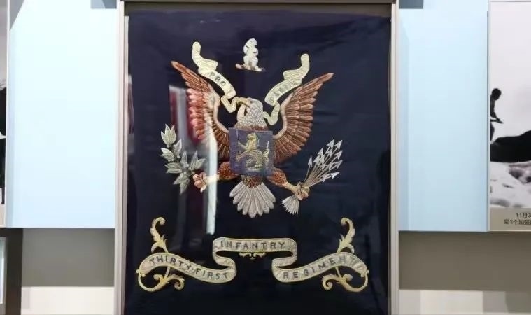 這是陳列在軍博的美軍“北極熊團(tuán)團(tuán)旗”?!犊邕^鴨綠江》真實(shí)還原了長津湖戰(zhàn)役中,志愿軍全殲美北極熊團(tuán)并繳獲其團(tuán)旗的全過程。