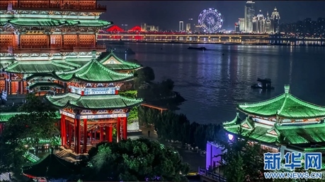 南昌文化地標(biāo)滕王閣夜景美輪美奐。新華網(wǎng)發(fā)