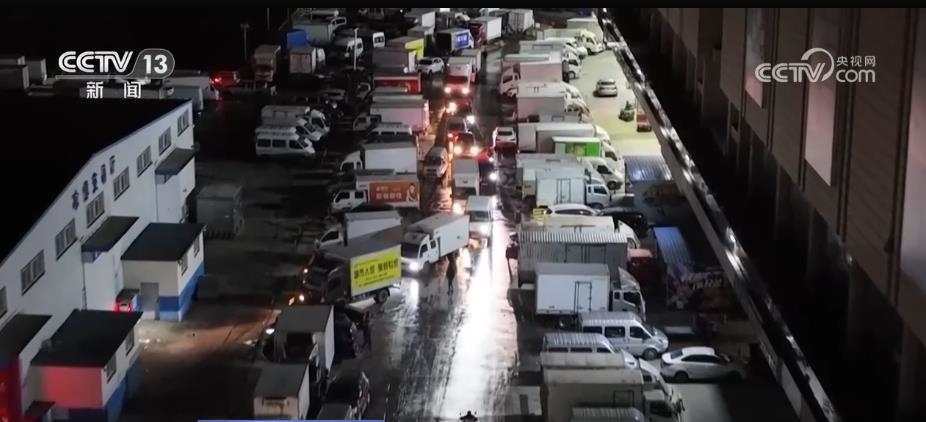 凌晨2點(diǎn)多,市場(chǎng)交易進(jìn)入高峰期,進(jìn)出停車(chē)場(chǎng)的貨車(chē)也出現(xiàn)了短暫的擁堵??拷ǖ篮统鋈肟诘狞S金地點(diǎn),客流更大、貨更好賣(mài),大家都想搶占。劉輕舟的工作就是讓各種車(chē)輛都能最快速地停到規(guī)定區(qū)域,要看先來(lái)后到,還要兼顧品種貨區(qū)。