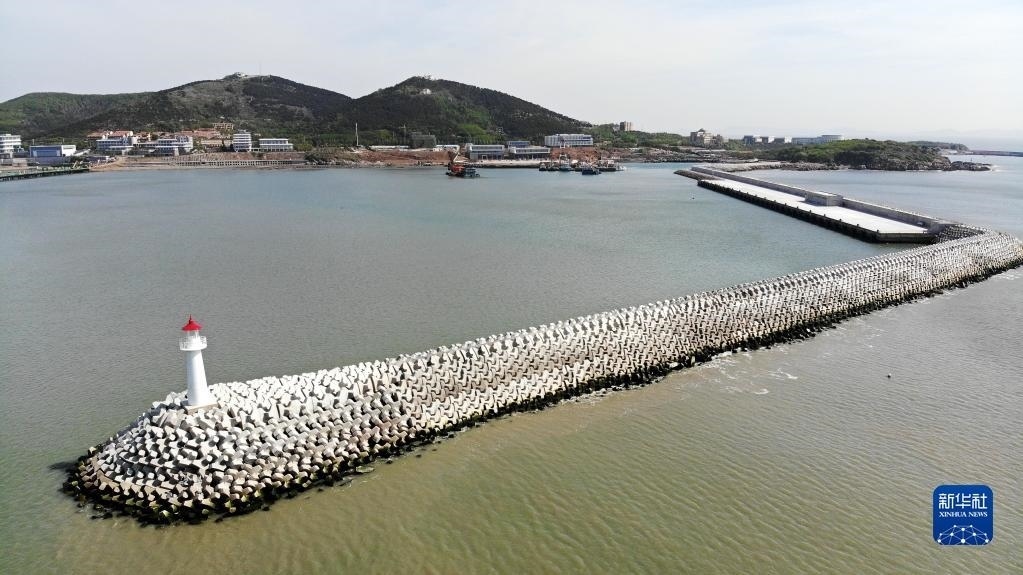 5月6日拍攝的中國(guó)地質(zhì)調(diào)查局大洋鉆探船北部碼頭防波堤。