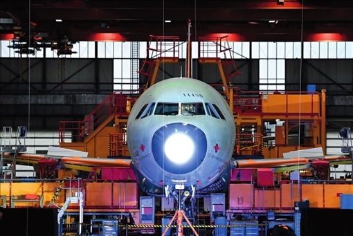 空客天津總裝線的首架空客 A321 飛機(jī)上線開(kāi)始總裝(2022 年 11 月 9 日攝)趙子碩攝 / 本刊