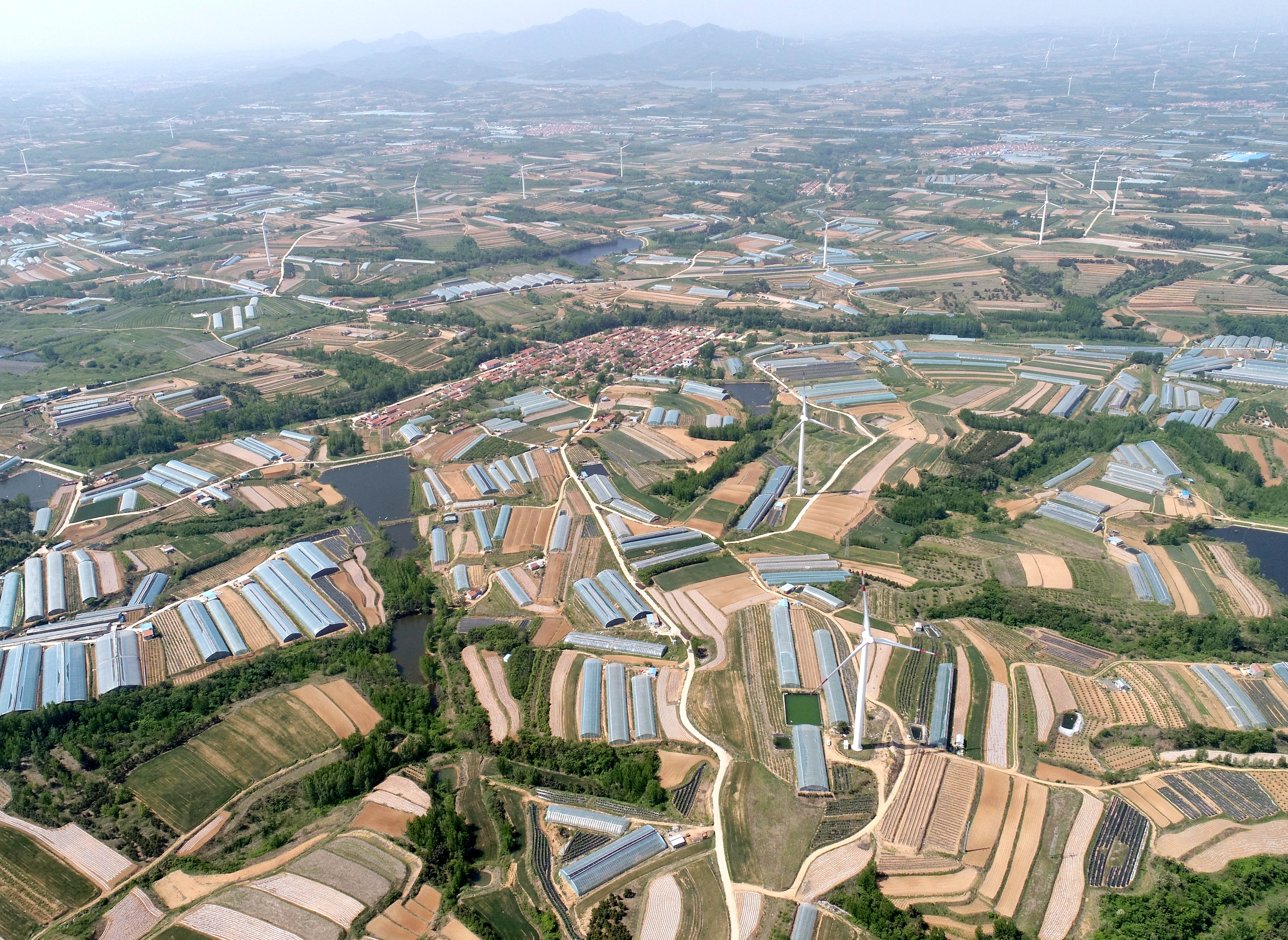 5月7日,在青島西海岸新區(qū)寶山鎮(zhèn)拍攝的藍(lán)莓種植大棚。 張進(jìn)剛 攝