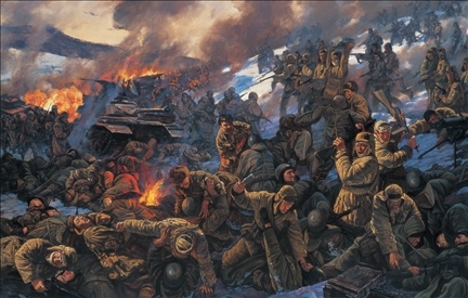 《激戰(zhàn)松骨峰》 布面油畫