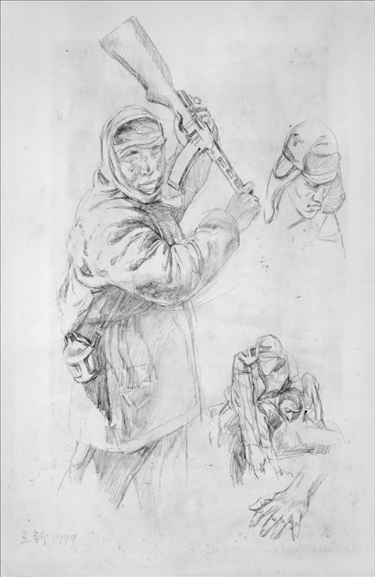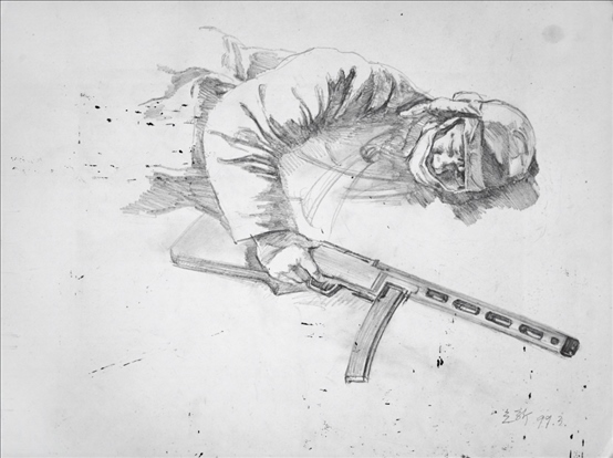 《激戰(zhàn)松骨峰》素描習作2