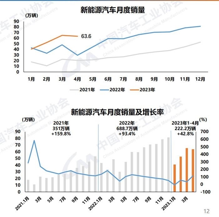 中汽協(xié)數(shù)據(jù)顯示,1-4月,新能源汽車產(chǎn)銷分別完成229.1萬(wàn)輛和222.2萬(wàn)輛,同比均增長(zhǎng)42.8%,市場(chǎng)占有率達(dá)到27%。4月,新能源汽車產(chǎn)銷分別完成64萬(wàn)輛和63.6萬(wàn)輛,同比均增長(zhǎng)1.1倍,市場(chǎng)占有率達(dá)到29.5%。