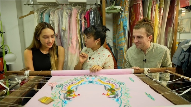 “老板,我是來做戲服模特”“我來考察非遺文化項(xiàng)目”美國(guó)的潘明花和意大利徐天佑一起來到狀元坊戲服工廠,戲服刺繡傳承人何鳳婷熱情地講述著戲服刺繡的歷史、制作工序、角色樣式,也讓他們親自體驗(yàn)了刺繡。潘明花驚嘆于刺繡工藝遠(yuǎn)比想象中要復(fù)雜得多。他們穿著戲服走近粵劇博物館,深入了解以粵劇為代表的嶺南文化。徐天佑表示戲服刺繡非遺的傳承不僅是技術(shù)工藝的傳承,同時(shí)也是文化的傳承。何鳳婷說如何讓更多年輕人喜愛和關(guān)注這項(xiàng)手藝,如何能繼續(xù)傳承下去是目前亟待解決的問題。為了讓刺繡與現(xiàn)代審美相結(jié)合,老板將刺繡工藝與年輕人喜愛的IP玩偶組合,將“激活非遺+創(chuàng)新思路+文化傳承”理念融入到刺繡中,讓這門手藝更面向大眾,推動(dòng)非遺的創(chuàng)造性轉(zhuǎn)化,提高與現(xiàn)代生活的緊密度,成為融入現(xiàn)代生活中的潮流元素,讓非遺重?zé)ü獠省?/p>