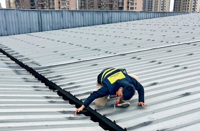 ▲“梅花”臺風將至,2022年9月14日16時,人保財險浙江溫州永嘉支公司青年員工趕在臺風前走訪重點企業(yè)開展防災檢查。他不懼危險,爬上客戶廠房棚頂查看密封情況,只為確保廠房安全。