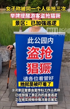 ·景區(qū)回應(yīng)女子舉牌提醒公園盜搶猖獗:正在核實,已加強(qiáng)巡邏。