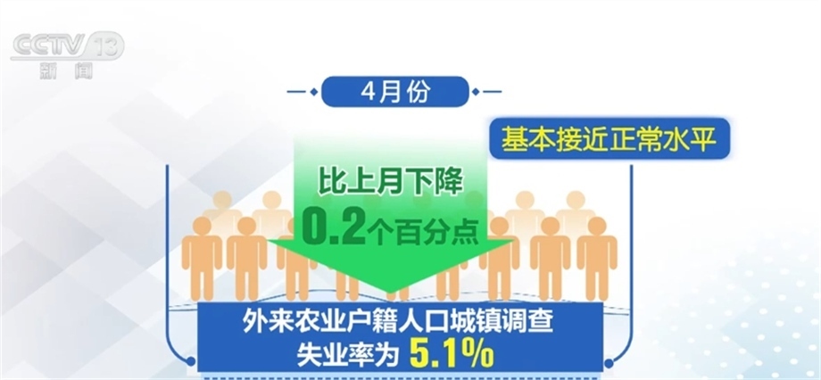 全國城鎮(zhèn)調(diào)查失業(yè)率連續(xù)兩個月下降。4月份,全國城鎮(zhèn)調(diào)查失業(yè)率為5.2%,比上月下降0.1個百分點(diǎn),接近2019年疫情前的統(tǒng)計水平。