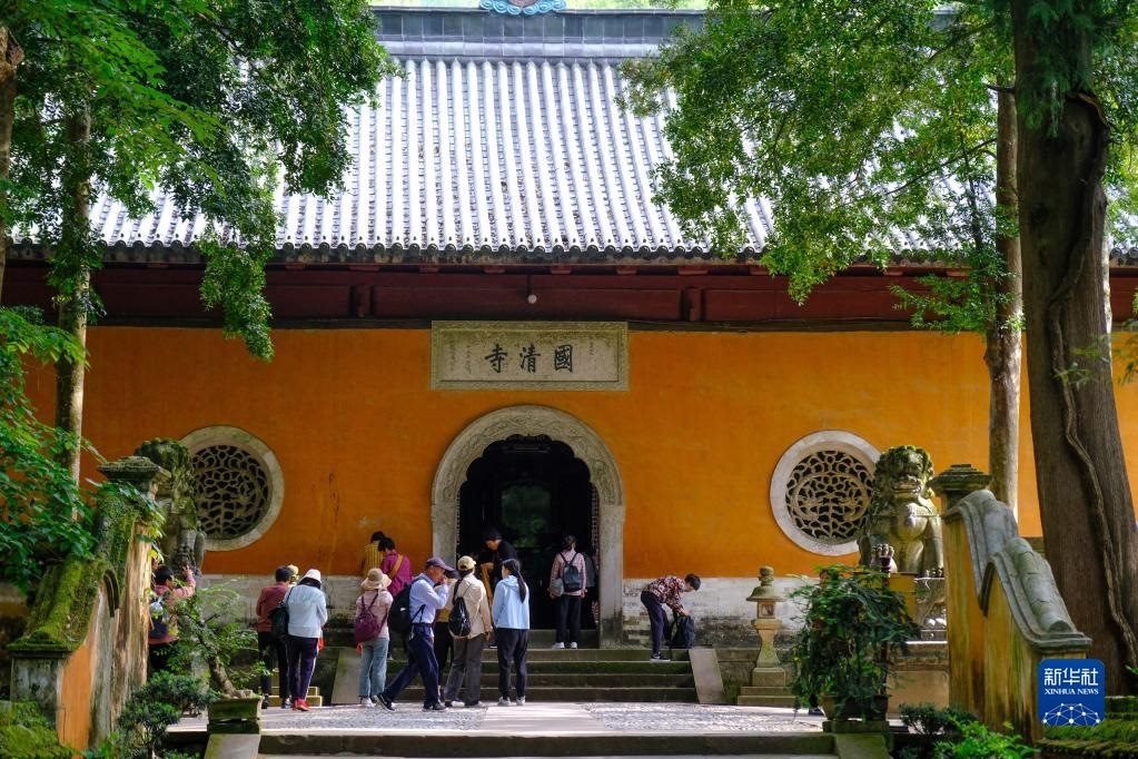 5月16日,游客在天臺(tái)縣國(guó)清寺參觀(guān)。