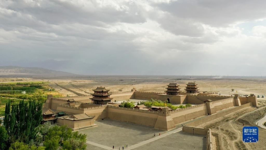 這是5月17日在甘肅省嘉峪關市拍攝的關城景區(qū)(無人機照片)。